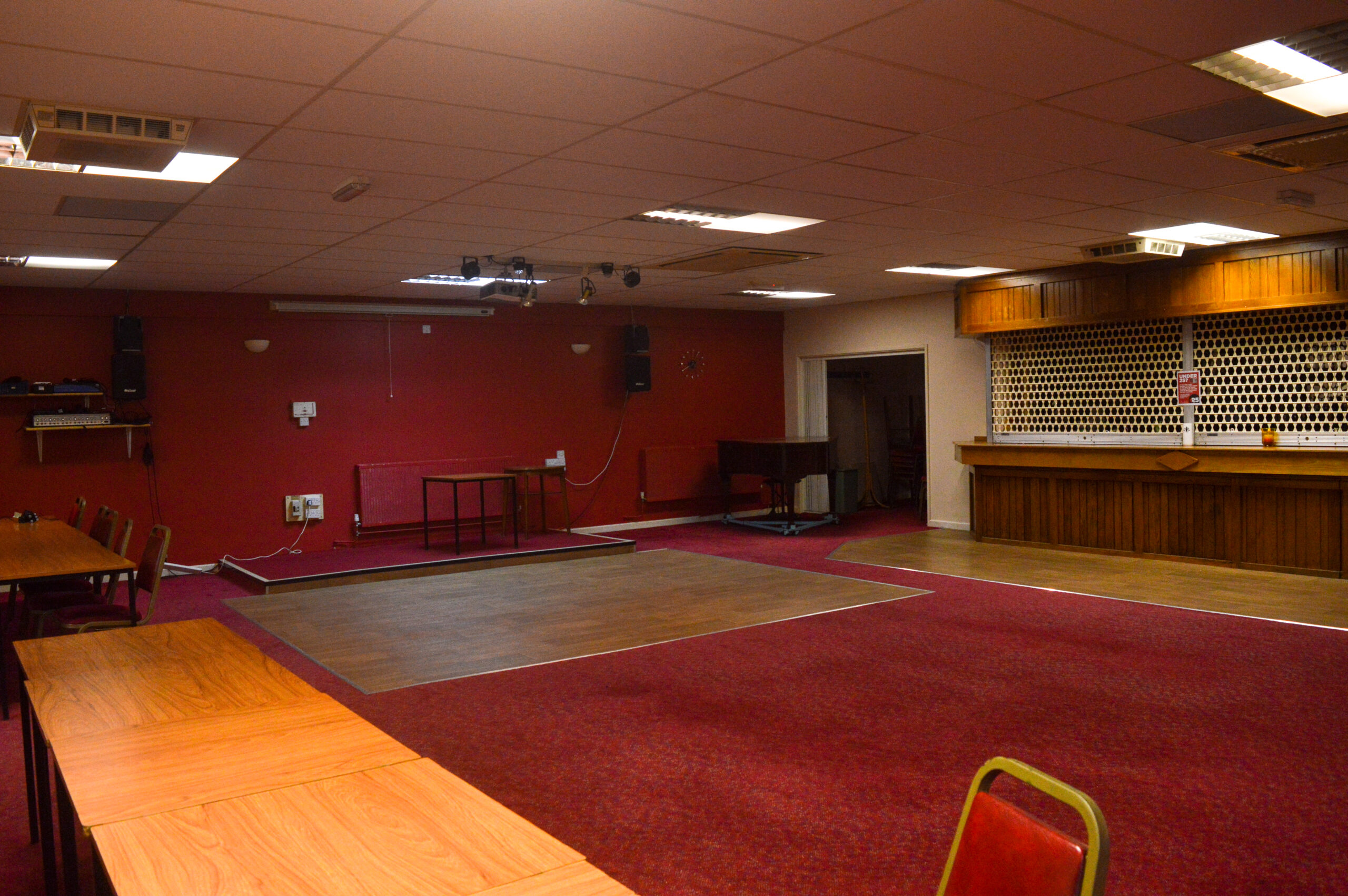 Our Jubilee Lounge has a maximum capacity of 120 people. Although this room is mainly carpeted, we do have a small designated dance floor space in front of a small stage. This room also comes equipped with a large bar area (Additional charges apply). This room backs onto the Skittle Alley and is situated next to the main kitchen. The room is setup with small tables and chairs, however, these can be arranged to your needs. This room also contains a projector and pull down screen.
